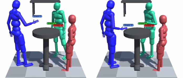 In addition, it is enough that we drink tea with someone else around for us to be willing to share the moment with them. We will change the dynamics involved in our gestures to show we take their interests and well-being into account. Can we create realistic social interactions among avatars and VR characters? This general question, focused specifically on body-centered interaction and interactive gestures, is what we are trying to answer in the EU Project PRESENCE.